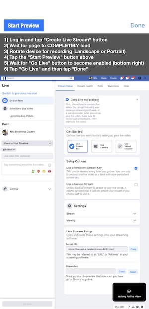 For the latest STEPS, see: Latest Facebook Live Setup Procedure